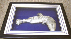This antique is called the Jambiya. It is the Arabic term for dagger, it is a type of dagger with a short curved blade that is worn on a belt. Although the term jambiya is also used in other Arab countries, it is mostly associated with people of Yemen. Men typically above the age of 14 wear it as an accessory to their clothing. It comes in a box for preview. The Jambiya consists of a dagger and a "home" for the dagger. All in one price! This particular Jambiya is plated with silver metal to give it a mid-evil feel.